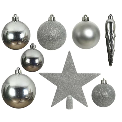 DECORIS Weihnachtskugeln Mix 023371 bruchfest silber 33St