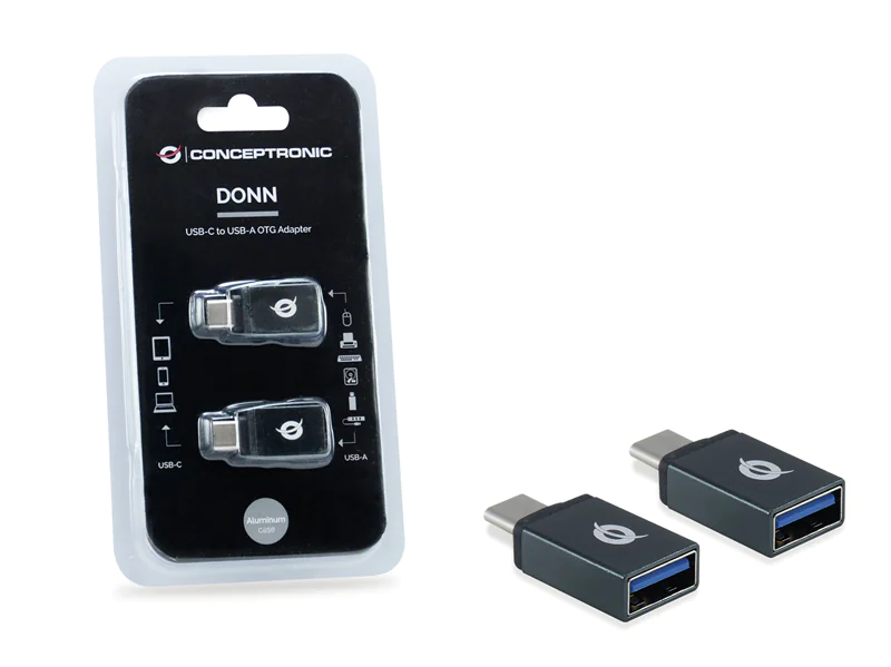 Conceptronic DONN OTG-Adapter für USB-C zu USB-A 2er Pack, USB 3.1 Gen 1 Type-C, USB 3.1 Gen 1 Type-A, Schwarz | ||||