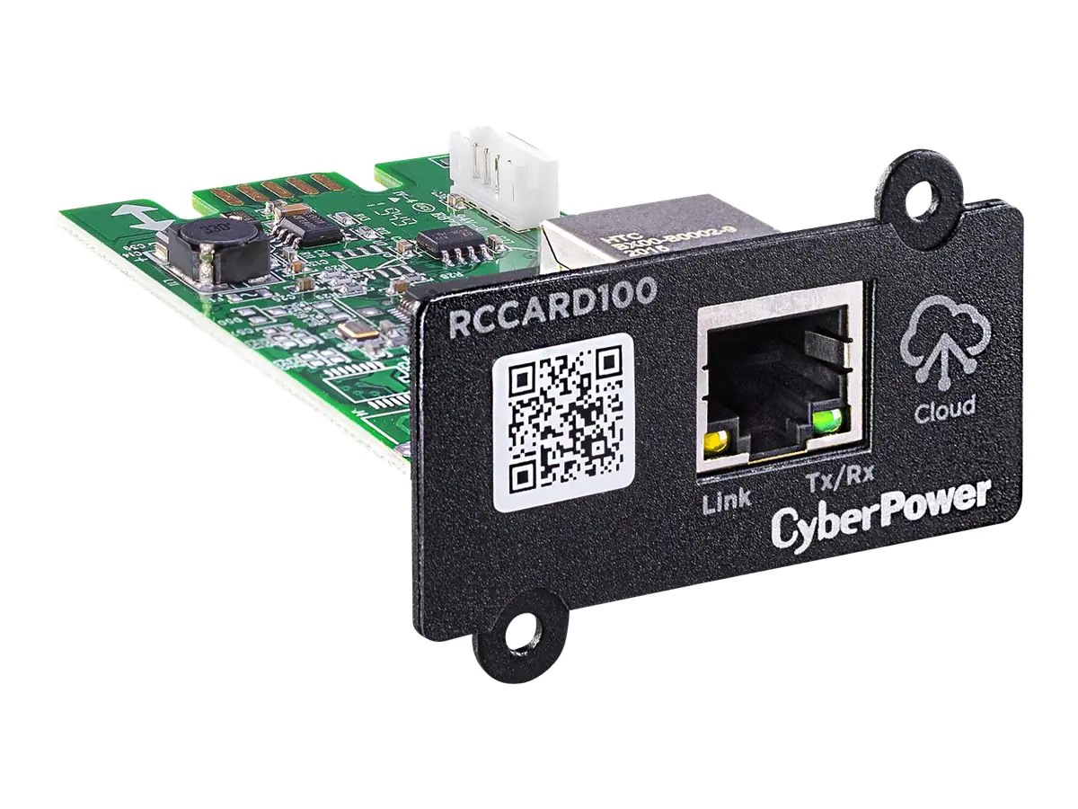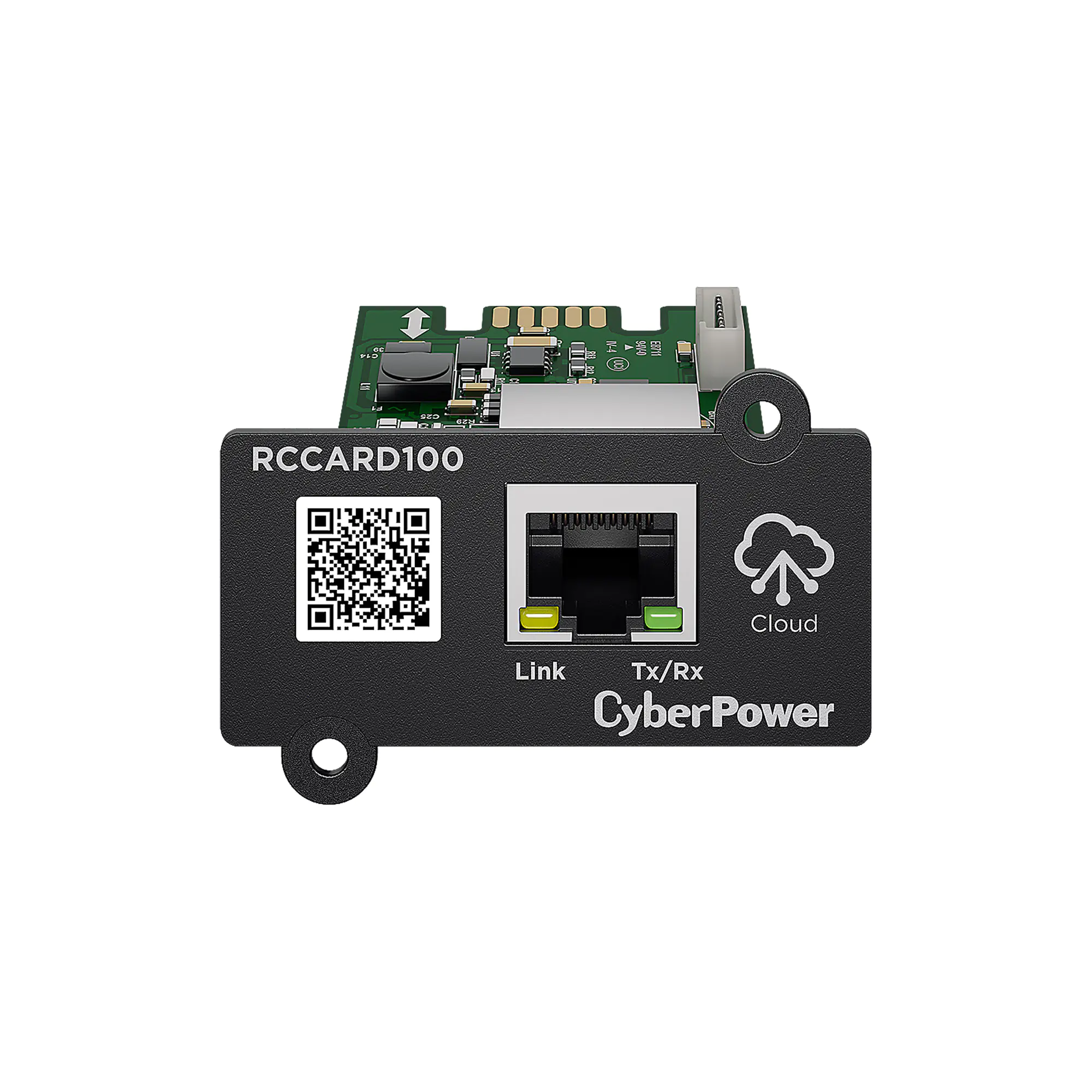 CyberPower RCCARD100 ist ein optionales Management-Add-on für bestimmte CyberPower UPS-Serien. Durch Einstecken der Karte in den Erweiterungssteckplatz der USV können Anwender die USV dem PowerPanel Cloud-System hinzufügen und so die Fernüberwachung und -verwaltung der USV über einen Webbrowser oder eine mobile Anwendung ermöglichen.