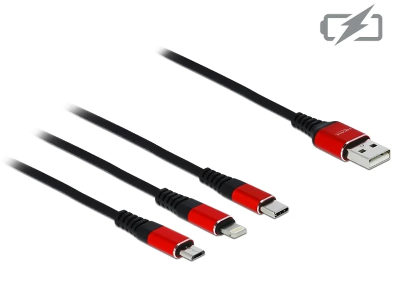 Beschreibung | Delock 3 in 1 - Kabel nur zum Laden - USB männlich zu Micro-USB Typ B, Lightning, USB-C männlich 1 m - abgeschirmt - Schwarz | |||