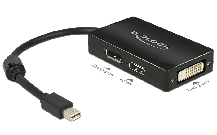 DeLOCK - DisplayPort-Adapter - Mini DisplayPort (M) bis DVI-D, HDMI, DisplayPort (W) - 16 cm - Schwarz