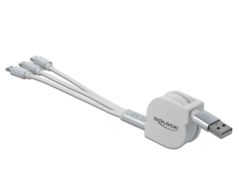 Beschreibung | Delock Lightning-Kabel - USB männlich zu Micro-USB Typ B, Lightning, USB-C männlich 98 cm - weiß - einziehbar - flach | |||