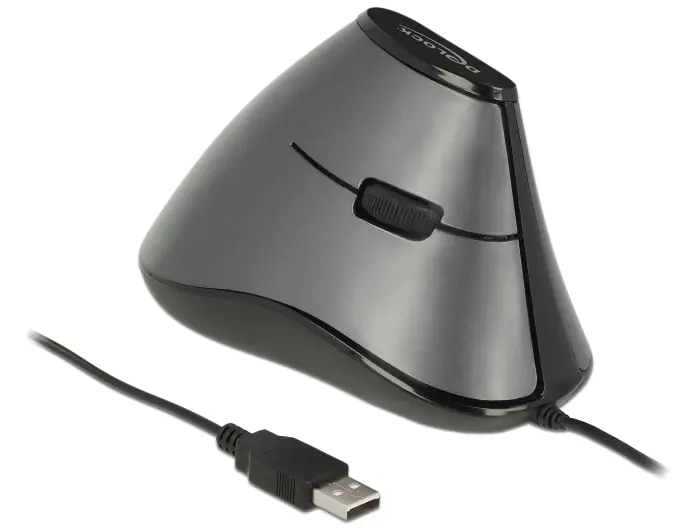 Delock - Vertikale Maus - ergonomisch - Für Rechtshänder - optisch - 5 Tasten - kabelgebunden - USB - Grau, Schwarz - retail