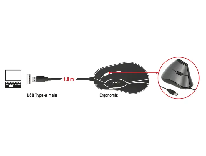 Delock Vertikale Maus - ergonomisch - Für Rechtshänder | ||||