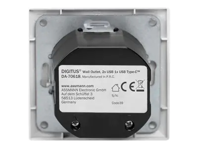 Digitus DA-70618 - USB-Ausgang - USB, USB Typ-C - 2 USB-Anschlüsse, 1 USB-C socket - 3.1 A - RAL 9003, Signal White