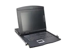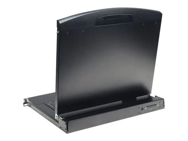 - Die Konsole kann komplett aus dem Serverschrank herausgezogen werden und der TFT-Bildschirm kann um 120 Grad geneigt werden