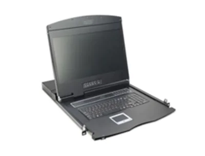 - Die Konsole kann komplett aus dem Serverschrank herausgezogen werden und der TFT-Bildschirm kann um 120 Grad geneigt werden