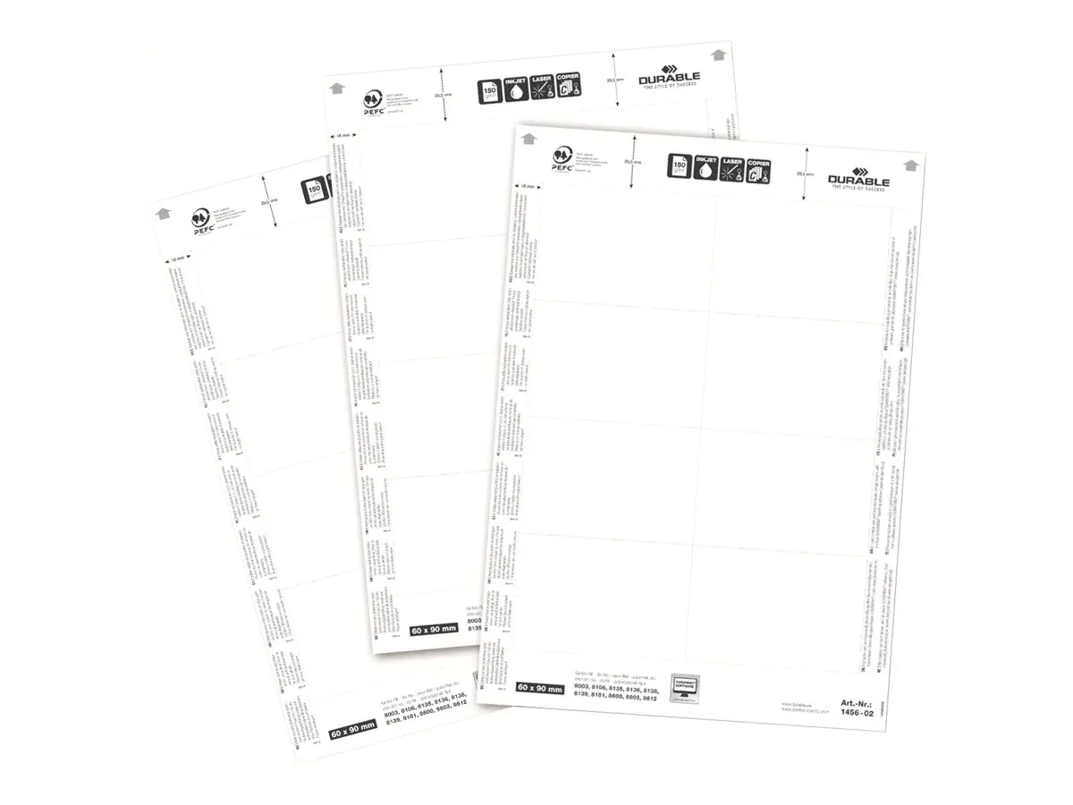 Durable Weiß - 60 x 90 mm - 150 g/m² - 160 Karte(n) (20 Bogen x 8) | ||||