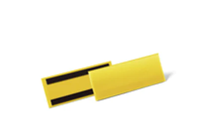 Etikettentasche mit zwei rückseitigen Magnetstreifen. Anwendung an metallischen Oberflächen wie z.B. an Lagerregalen und Metallbehältern.
