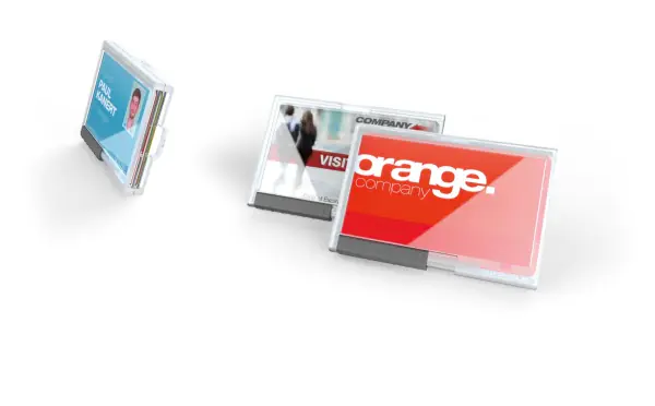 Beschreibung | Durable Kartenhalter PUSHBOX DUO, Landschaftsportrait, Kunststoff, Transparent, Seite, 54 mm, 87 mm 54x87 mm - 10 Stück | |||