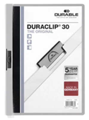 Durable Duraclip 30. Produktfarbe: Grau, Transparent, Material: PVC, Maximale Kapazität: 30 Blätter. Menge pro Packung: 1 Stück(e)