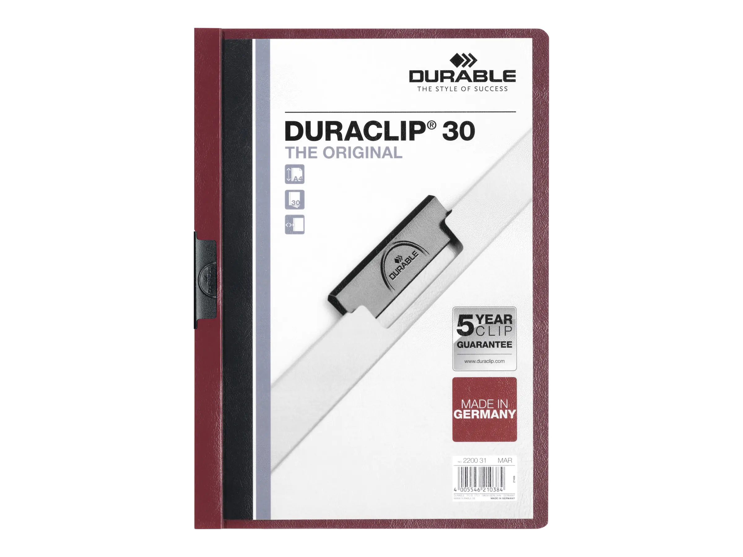 Durable Duraclip 30. Produktfarbe: Burgund, Transparent, Material: PVC, Maximale Kapazität: 30 Blätter. Menge pro Packung: 1 Stück(e)