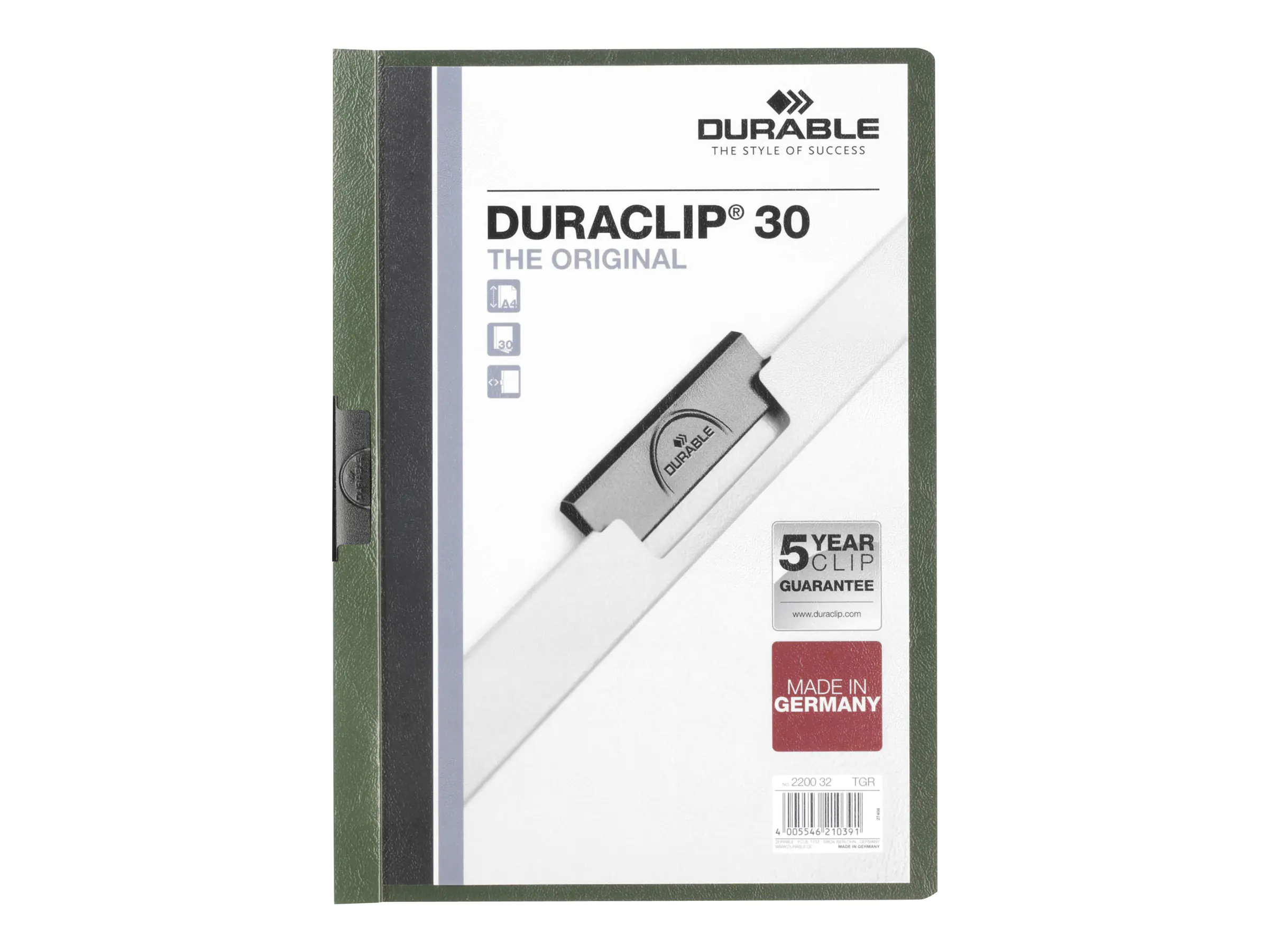 Durable DURACLIP 30 A4. Format: A4, Material: PVC, Produktfarbe: Schwarz, Grün, Transparent. Menge pro Packung: 1 Stück(e)