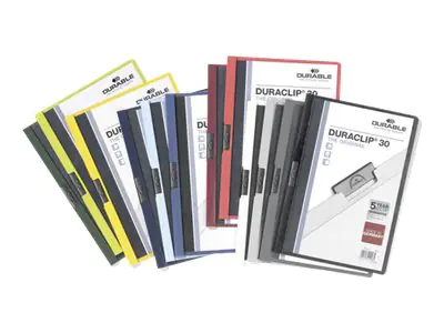 DURABLE Klemmmappe DURACLIP® 30 DIN A4 Hartfolie Farbe der Rückseite: je 5 x weiß, rot, hellblau, grau, dunkelgrün Farbe der Klemme: schwarz 25 St./Pack.