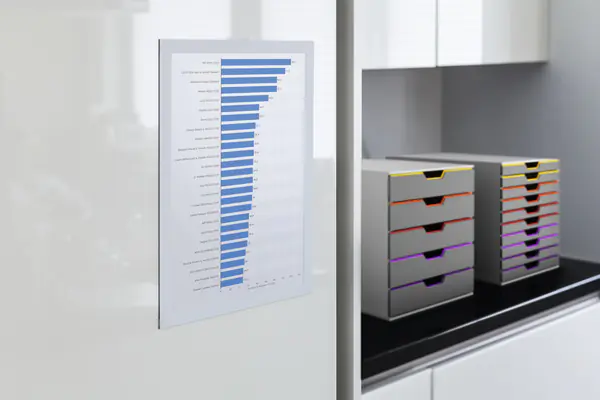 Schilder- und Präsentationssysteme: Ob in Konferenzräumen, am Empfang oder im Lager – die Schilder- und Präsentationssysteme von Durable sorgen für eine klare Kommunikation. Tischaufsteller, Türschilder und Präsentationsmappen sind nicht nur funktional, sondern auch optisch ansprechend und tragen zu einem professionellen Erscheinungsbild bei.