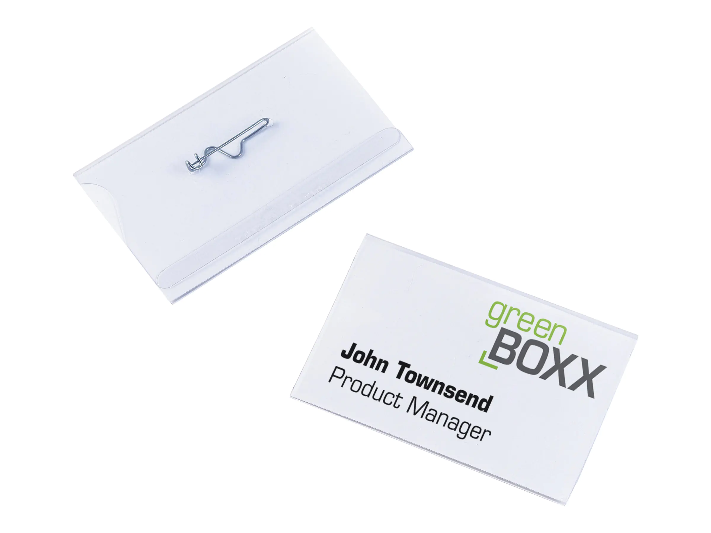 Besonders geeignet zur Ausstattung vieler Personen, z.B. auf Konferenzen und Großveranstaltungen, bei denen Schilder oft nicht zurückgegeben werden. Mit Daumenstanzung für leichten Austausch der Einsteckschilder. Einfache Beschriftung mit kostenloser DURAPRINT® Software mit Datenbankfunktion.