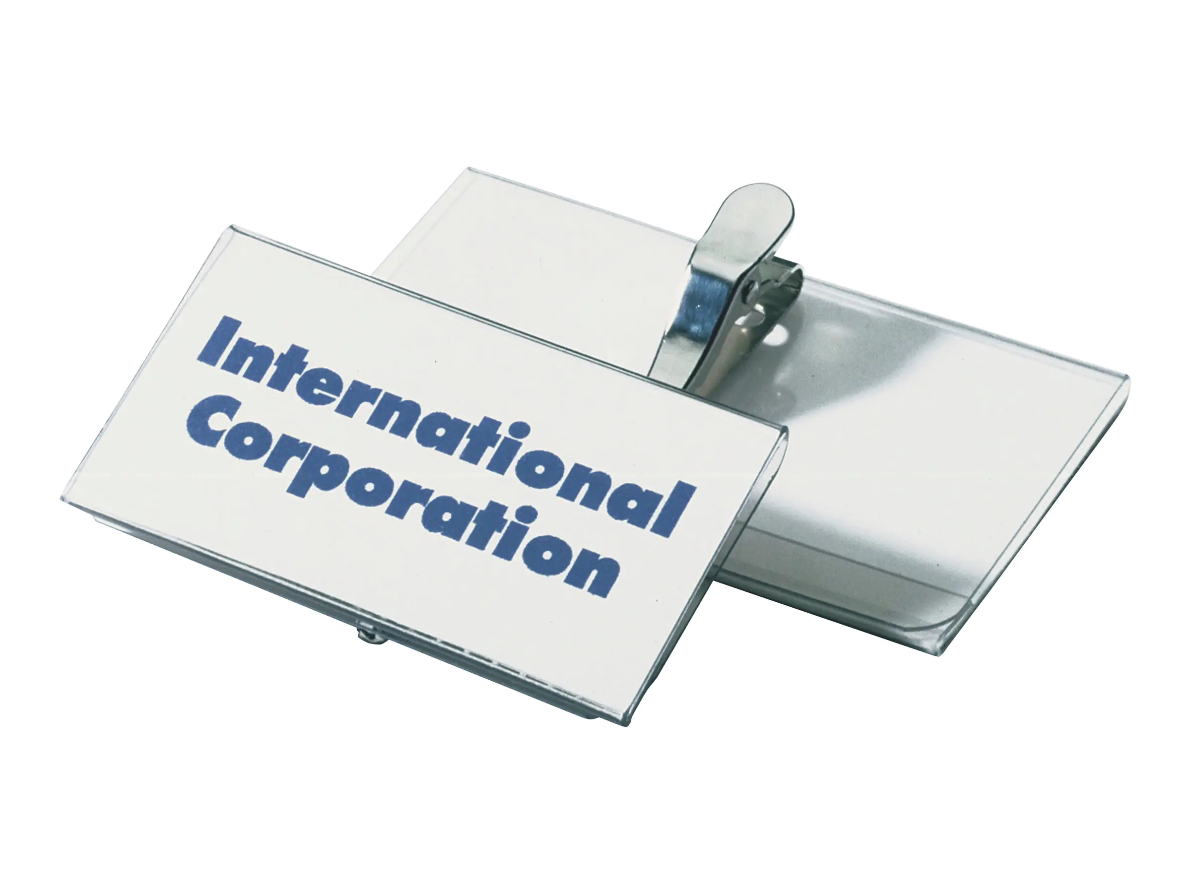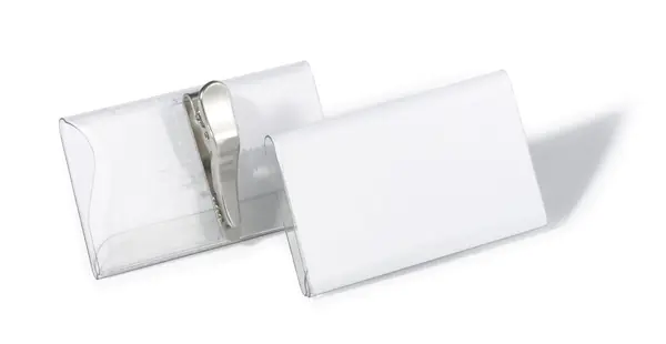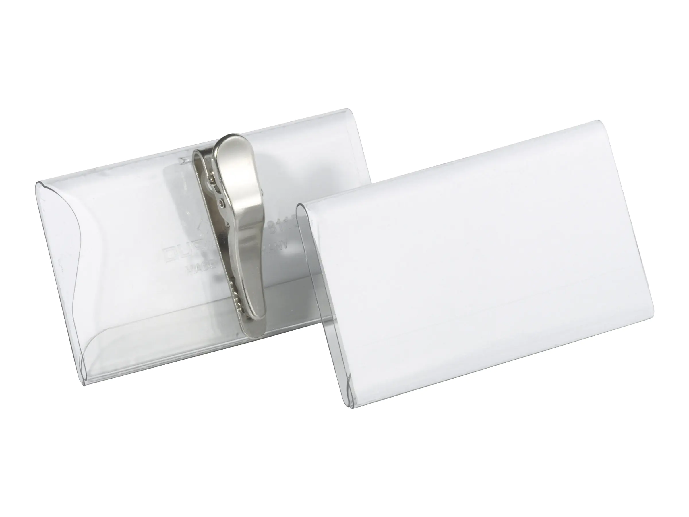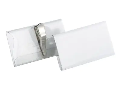 Durable Namensschild mit Krokoklemme 40 x 75 mm. Ausrichtung: Landschaft, Material: PVC, Produktfarbe: Transparent. Breite: 75 mm, Höhe: 40 mm. Menge pro Packung: 25 Stück(e)