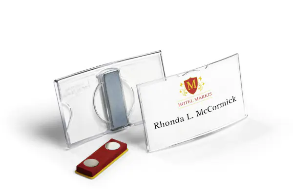Durable Namensschild konvex mit Magnet 40 x 75 mm, Abzeichen, Landschaft, Acryl, Transparent, Seite, 75 mm | ||||