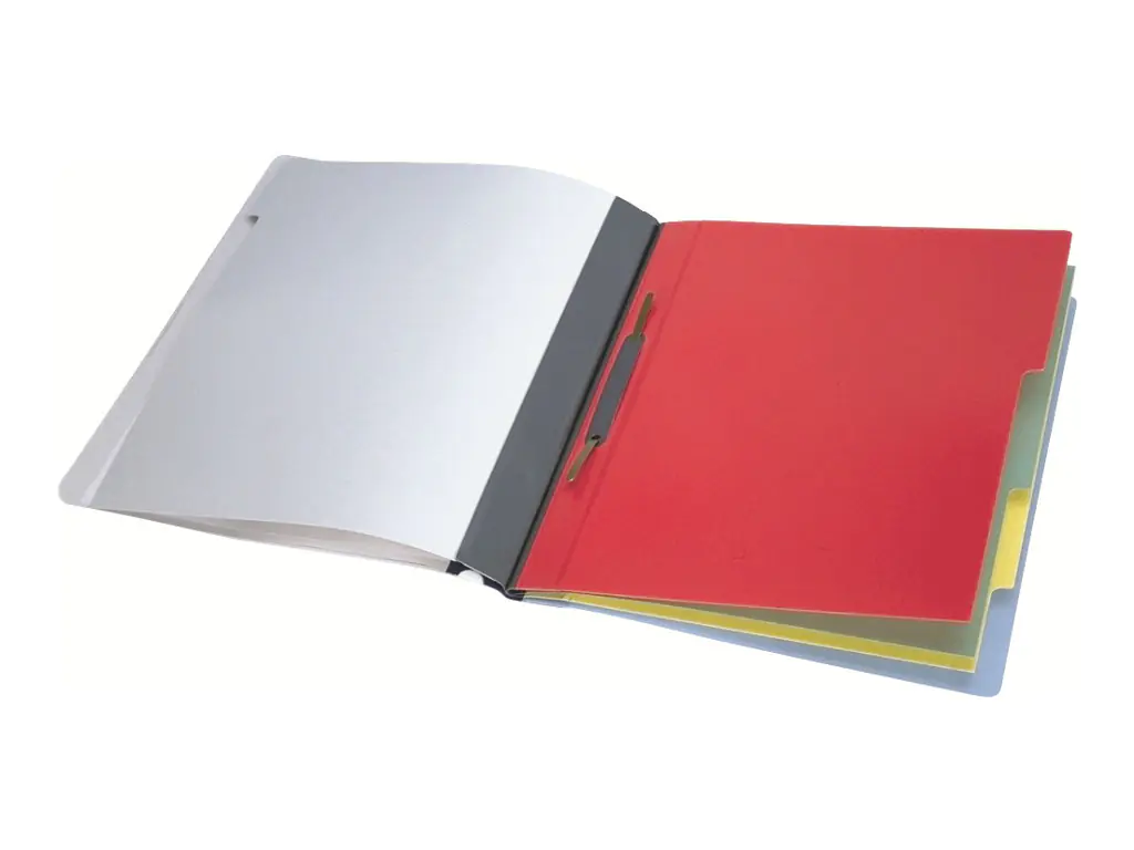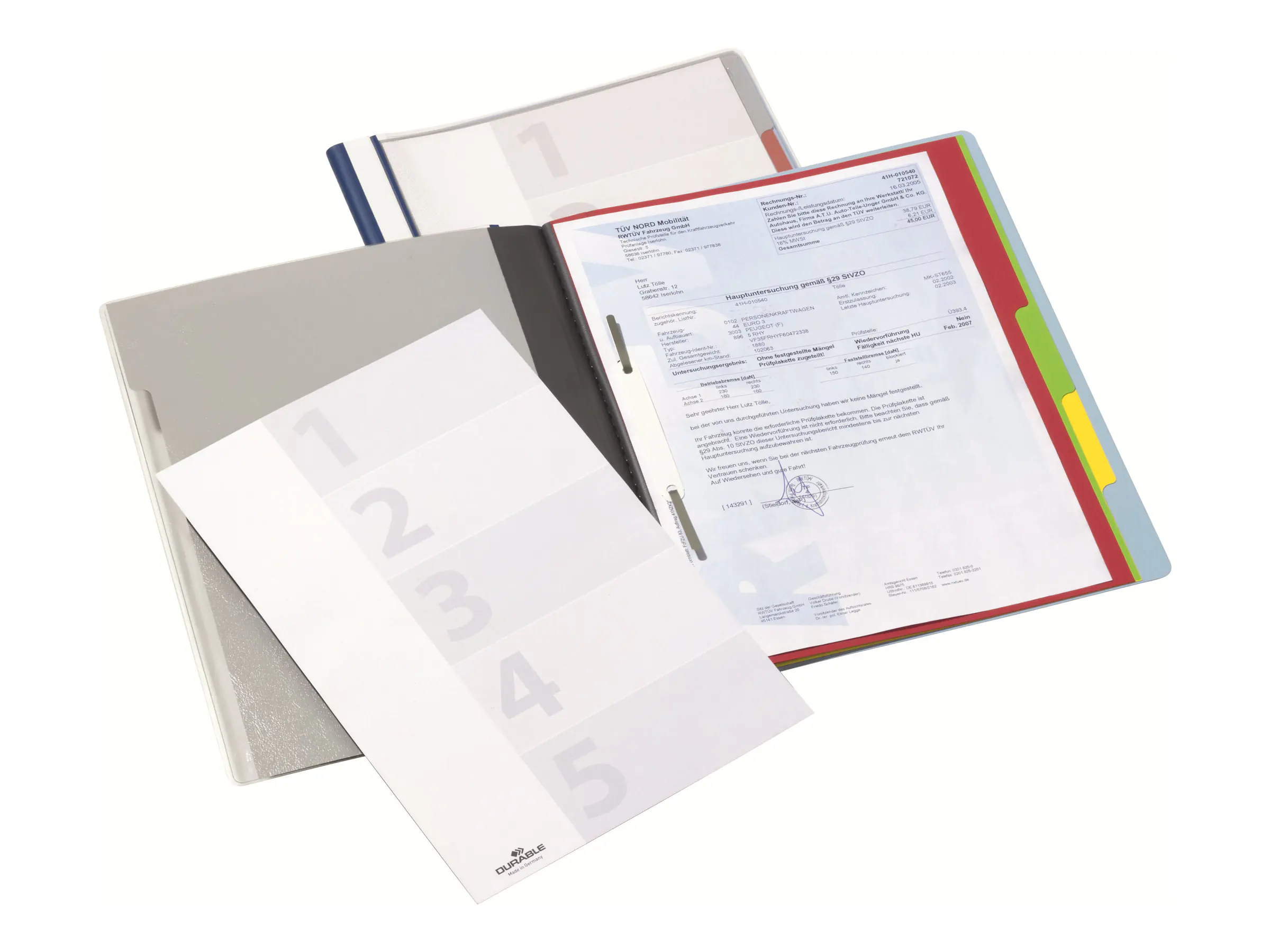 - Mit fünf farbigen Unterteilungen mit je 1 Abheftung und neutralem Inhaltsverzeichnis