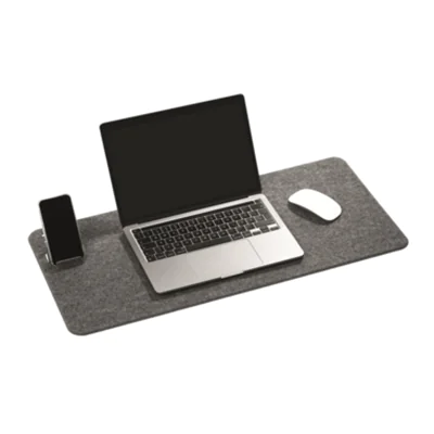 Schreibunterlage mit Handyhalter, welcher sich mühelos ausklappen und ebenso schnell wieder einklappen lässt, ohne dass die Aussparungen sichtbar sind. Die angenehme Oberfläche bietet ein erstklassiges Schreibgefühl, während sie Tische vor Kratzern und Flecken schützt. Das Filzmaterial beeinflusst die Akustik positiv, indem es störende Geräusche wirkungsvoll absorbiert. Die Schreibunterlage lässt sich auf die Hälfte zusammenklappen und ist somit ein perfekter Begleiter im Homeoffice. Sie besteht aus einem leicht zu reinigenden Material - die Oberfläche lässt sich einfach mit einem feuchten Tuch säubern.