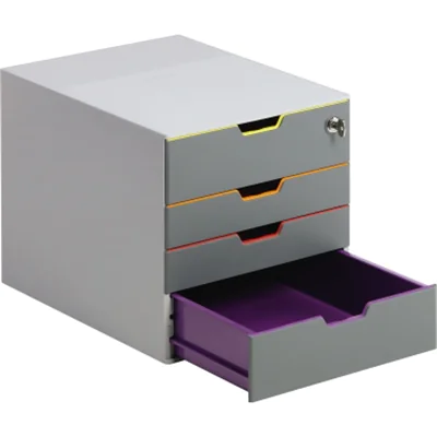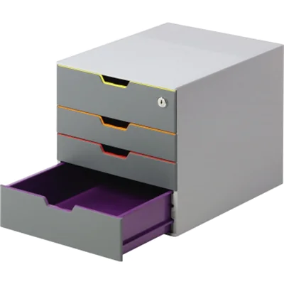Durable VARICOLOR. Anzahl der Schubladen: 4 Schublade(n), Rahmenfarbe: Grau, Rahmenmaterial: Kunststoff. Breite: 280 mm, Tiefe: 356 mm, Höhe: 292 mm