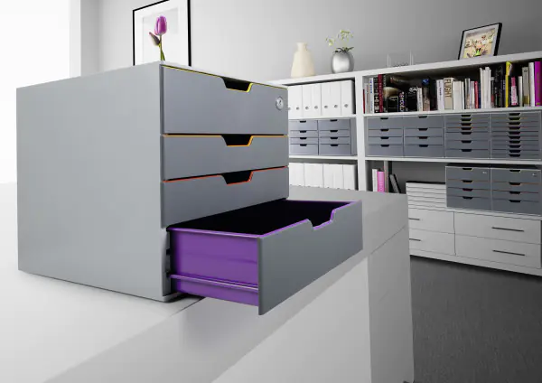 | Beschreibung | Durable VARICOLOR, 4 Schublade(n), Grau, Kunststoff, A4, Einfarbig, Multi VARICOLOR SAFE - farbiger Ablauf/Verlauf | |||