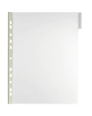 - Aus glasklarer Hartfolie mit angeschweißtem, farbigen 60 mm-Tab in 5/5-Teilung und blanko Einsteckschildern