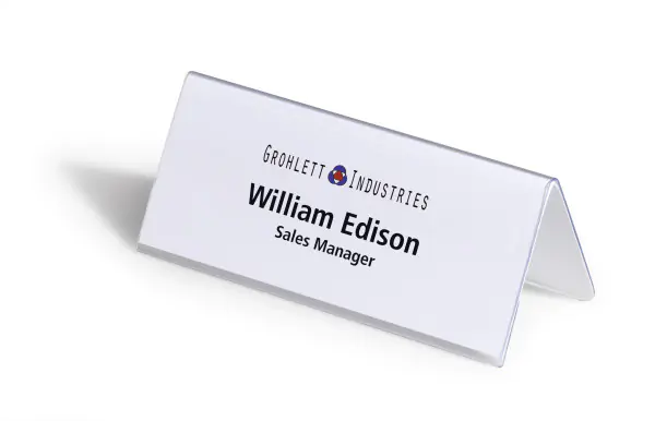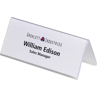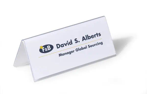 Für Seminare, Rezeption und Schalter mit auswechselbarem Blanko-Einsteckschild mit Dekorrahmen. Einfache und professionelle Beschriftung mit DURAPRINT. Hochtransparent für optimale Lesbarkeit.
