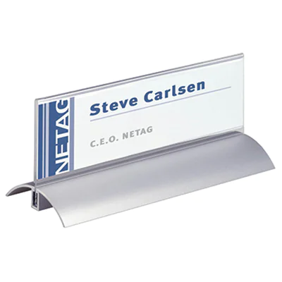 Hochwertiger Tischaufsteller für Konferenzen, Rezeptionen und Schalter sowie zur Preisauszeichnung in Schaufenstern und Verkaufsräumen. Das einzigartige Klemmsystem hält das Schild sicher und ermöglicht ein leichtes Auswechseln des Einsteckschildes mit Dekorrahmen. Hochtransparent für optimale Lesbarkeit.