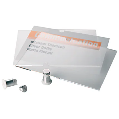 - 2 semitransluzenten, EDV-beschriftbaren Folien und Schraubverbindungen
