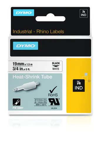 Dymo RhinoPRO Heat shrink tubing - Polyolefin - Schwarz auf Weiß - Rolle (1,9 cm x 1,5 m) | ||||