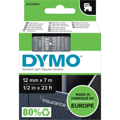Dymo D1 - Selbstklebend - White on Transparent - Rolle (1,2 cm x 7 m) | ||||