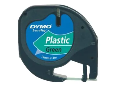 Dymo LetraTAG - Kunststoff - Schwarz auf Grün - Rolle (1,2 cm x 4 m) | ||||