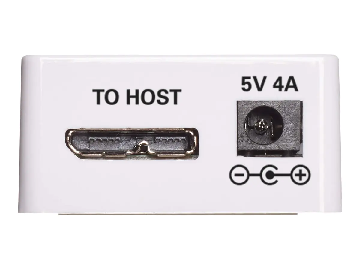 - Externer Stromadapter liefert konstante 5 V Spannung und 4 A Strom