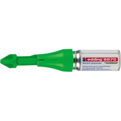 Der Bohrloch Spraymarker mit patentiertem Pumpmechanismus ist für nicht permanentes Markieren an schwer zugänglichen Stellen auf fast allen Materialien geeignet. Die speziell geformte Spitze ermöglicht Markierungen durch Bohrlöcher von bis zu 50 mm Tiefe und 3–13 mm Durchmesser. Mit einem Spraymarker sind mehr als 250 Markierungen möglich. Der Bohrloch Spraymarker kann aus jedem Winkel und jeder Höhe verwendet werden, auch über Kopf. Intensive und auffällige Farbe, welche auf fast allen Oberflächen sichtbar ist. Die Markierungen sind von geschlossenen Oberflächen einfach abwischbar und ermöglicht so schnelle Korrekturen. Der Sicherheitsverschluss schützt vor unbeabsichtigtem Sprühen.