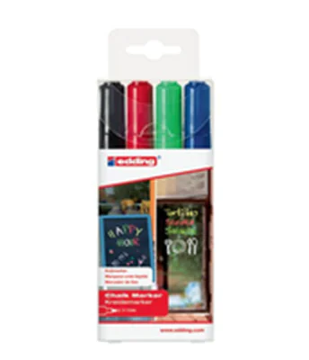 - Kreidemarker für deckende Gestaltungen auf Glas, Fenster u.a. geschlossenen Oberflächen