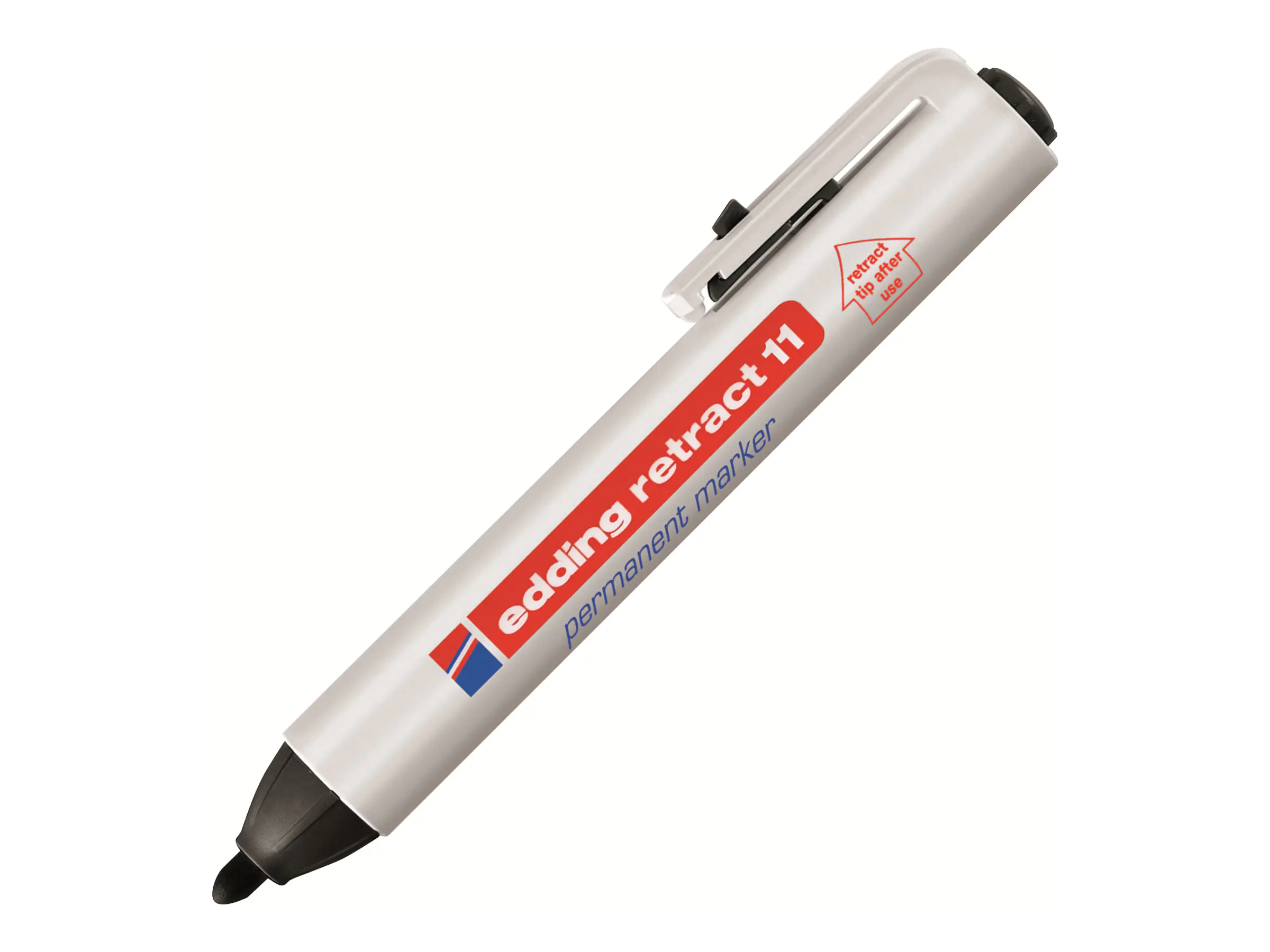 Permanentmarker zum dauerhaften Beschriften und Kennzeichnen von fast allen Materialien wie z.B. Papier, Karton, Kunststoff, Metall, Glas und glattem Holz.. Die Abdichtungstechnik verhindert das Austrocknen des Markers bei eingezogener Spitze. Ein-Hand-Bedienung, d.h. es wird keine Kappe benötigt.