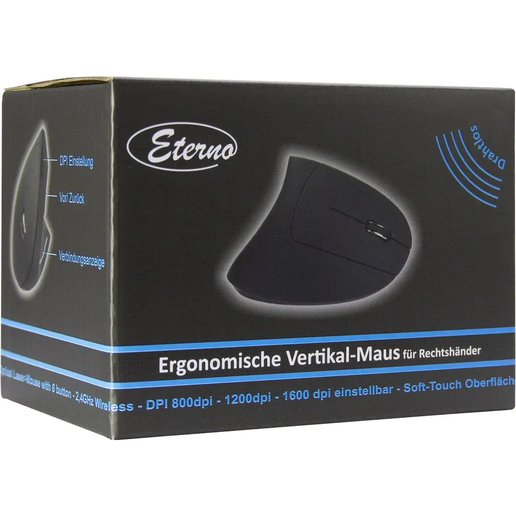 Eterno KM-206R - Vertikale Maus - ergonomisch - Für Rechtshänder - 6 Tasten - kabellos - 2.4 GHz - kabelloser Empfänger (USB)