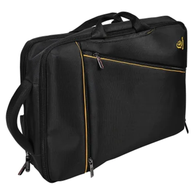 - zwei Reißverschlussfächer auf der Vordertasche für kleine Gegenstände, ein Reißverschlussfach zur Ablage von Stiften und Smartphones innen, verstärktes Hauptfach für Notebook und Dokumente, zusätzliches Innenfach, ein Netzfach innen