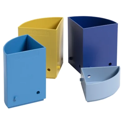 Der erste modulierbare Stifteköcher! 4 Viertel können miteinander kombiniert werden, um einen runden Organizer mit 4 Fächern zu bilden. Sie können auch übereinander gestapelt werden, um Platz zu sparen und/oder bestimmte Gegenstände zu verdecken. 2 verschiedene Höhen: 3 hohe Fächer für große Utensilien (Scheren, Stifte...) und 1 niedriges Fach für kleine Gegenstände (Büroklammern, Reißzwecken...).