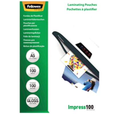 Fellowes Laminating Pouches Impress 100 Micron - 100 Mikrometer - 100er-Pack - glänzend - A5 (148 x 210 mm) Taschen für Laminierung