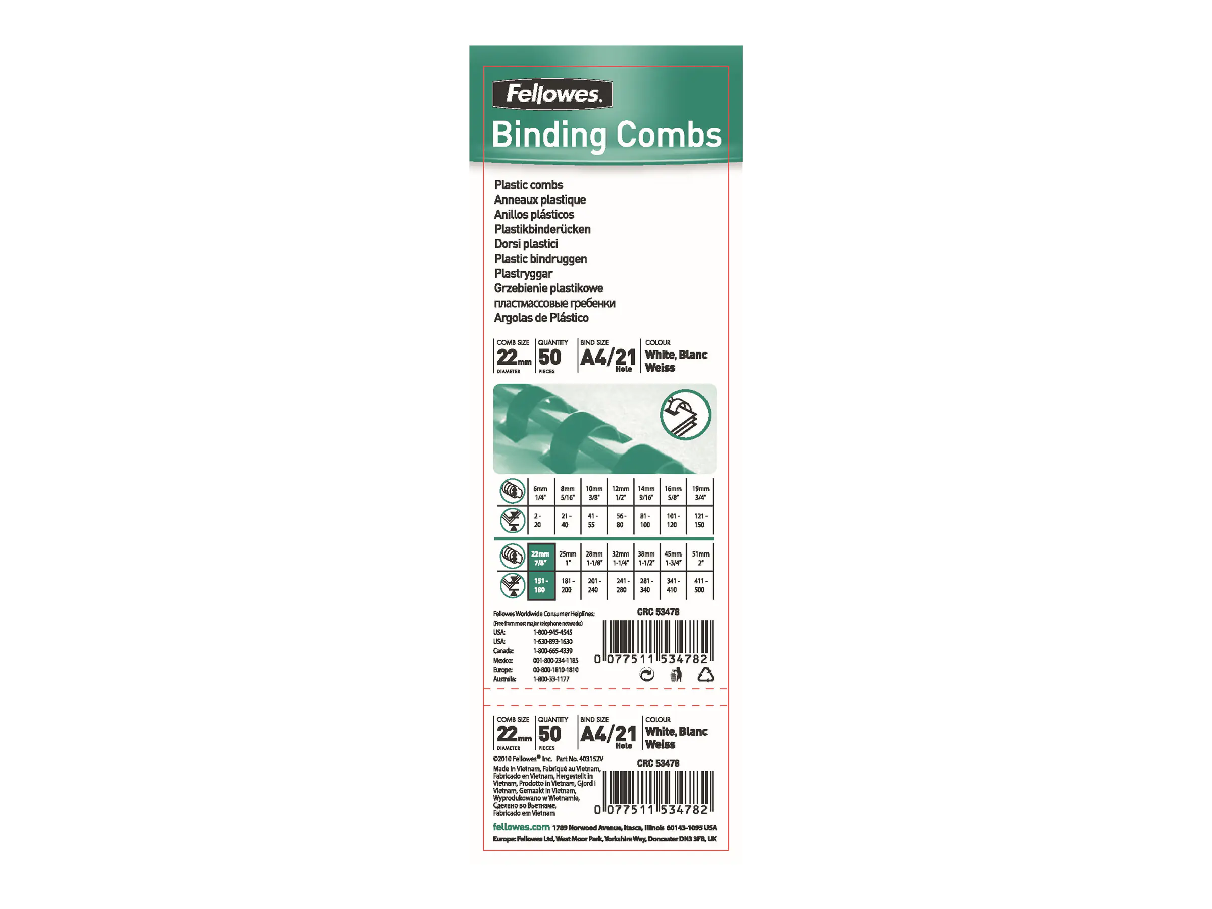 Produktbeschreibung | Fellowes - 50 Stck. - Bindekamm aus Kunststoff | |||