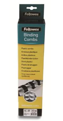 Beschreibung | Fellowes 53465, Schwarz, 80 Blätter, Kunststoff Plastikbinderücken 12mm - A4 | |||