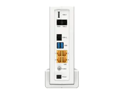 - Art des Anschlusses: 4 x Gigabit-LAN, 4 x 4 WLAN AC+N, 2 x USB 3.0. DECT-Basis, ISDN-S-Bus, 2 x analog (a/b-Ports), Kabelanschluss