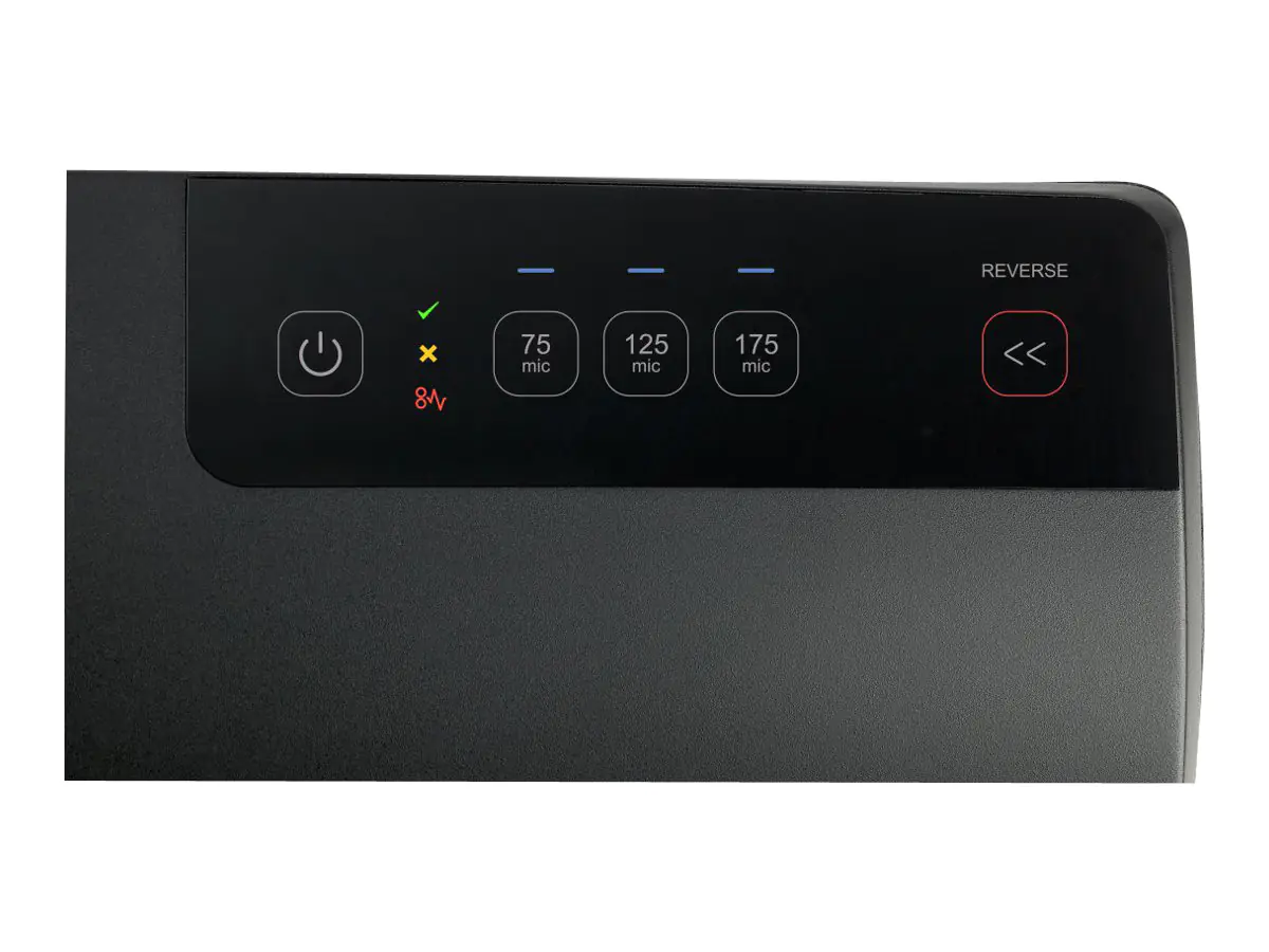 - Automatischer Warnton bei Fehleinzug - einfach Freigabetaste drücken, um fehleingezogene Laminiertaschen zu entnehmen