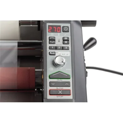 Das Catena™ 35 bewältigt anspruchsvollste Aufgaben mühelos und mit unerreichter Flexibilität und Effizienz. Die neue und verbesserte Version des kompakten Laminiergeräts nimmt im Büro, in der Schule oder in der kleinen Druckerei nur wenig Platz in Anspruch. Der auf 6 mm verbreiterte Zufuhrspalt ermöglicht schnelles und problemloses Aufziehen von Medien auf Schaumkernplatten. Die neuen Merkmale - offenes Design, schwenkbarer Zufuhrtisch, automatische Geschwindigkeitswahl und programmierbare Festwerttasten zum Programmieren der meistverwendeten Temperatureinstellungen - sorgen dafür, dass auch Erstanwender das Catena™ 35 leicht bedienen können. Leichte Aluminiumachsen ermöglichen einfaches Wechseln der Folienrollen. Zusätzliche Stopp-Taste an der Geräterückseite zum Anhalten des Betriebs beim Prüfen der Ausgabe. Überarbeitetes Bedienfeld mit übersichtlicher Tastenanordnung. Rückseitiger Trimmer erleichtert das Abschneiden des Laminats.
