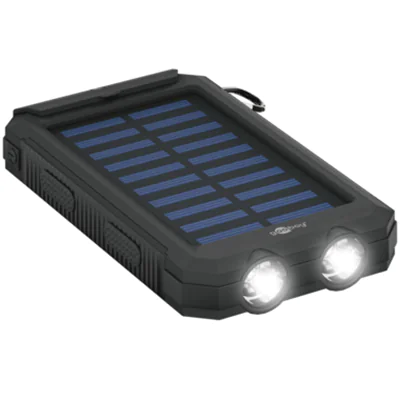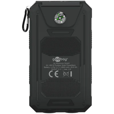 Robuste Solar-Powerbank mit Anti-Rutsch-Seiten für den Outdoor-Einsatz wie Wanderungen und Bergsteigen. Solarpanel für Ladeunterstützung und verlängerte Akkulaufzeiten. Mit einem Karabiner wird der externe Akku am Wanderrucksack befestigt. Powerbank besitzt eingebauten Kompass und Taschenlampe mit SOS-Funktion dank der 2 superhellen LED-Leuchten. Durch die praktische LED-Statusanzeige wird angegeben, wann der portable Akku wieder aufgeladen werden muss. Die kompakten Abmessungen machen die Powerbank zum optimalen Begleiter für unterwegs.