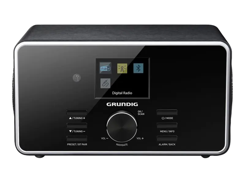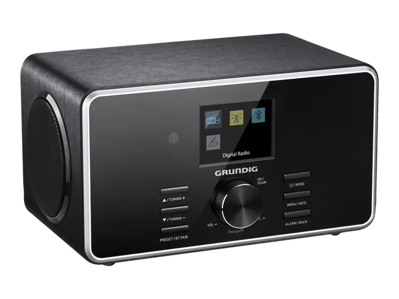 Dieses moderne Digital-Radio kombiniert modernste Empfangstechnologie (DAB+/FM-Tuner, Speicher für 40 Sender) mit einem raumfüllenden und ausgewogenen Klangbild, das vom ein 2.0 Stereo Lautsprechersystem mit satten 10 W RMS Ausgangsleistung erzeugt wird. Wahlweise können Sie natürlich auch per Bluetooth von Ihrem Smartphone oder Ihrem Rechner Ihr persönliches Programm streamen. Zudem lässt Ihr Radio sich auch als Wecker (mit Dual-Alarm und Sleep-Timer) einsetzen. Eine einfache, intuitive Bedienung gewährleistet das großzügige 2,4 Zoll TFT Farbdisplay, dessen Helligkeit sich in drei Stufen regeln lässt. Zusätzlichen Komfort bieten ein Kopfhörer-Ausgang sowie eine Fernbedienung.