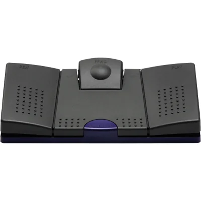 Der Fußschalter ist ein hochwertiges Steuergerät für professionelle Schreibplätze mit bewährtem ergonomischem Design. Seine drei Tasten sind mit den Funktionen Start / Stopp, Schnellvorlauf und Schnellrücklauf belegt. Je nach Einstellung des Umschalters in der Bodenplatte bleibt beim Digta Foot Control 540 USB die Startfunktion bei Betätigung des Fußpedals elektronisch gerastet, oder das Diktat wird wiedergegeben, solange das Fußpedal gedrückt ist. Die funktionslose Platte in der Mitte dient als Ruheposition bei Bedienung mit einem Fuß.