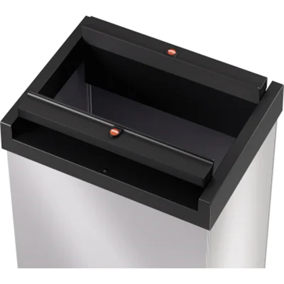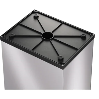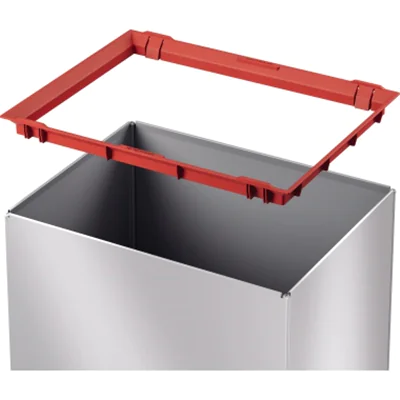 Die Großraum-Müllbox mit selbstschließendem Schwingdeckel. Die Schwingdeckelflügel können für eine dauerhafte Öffnung festgestellt werden. Mit Müllbeutel-Klemmrahmen. 4 Anti-Rutsch-Füße. Flach verpackt, aber schnell zusammengebaut.